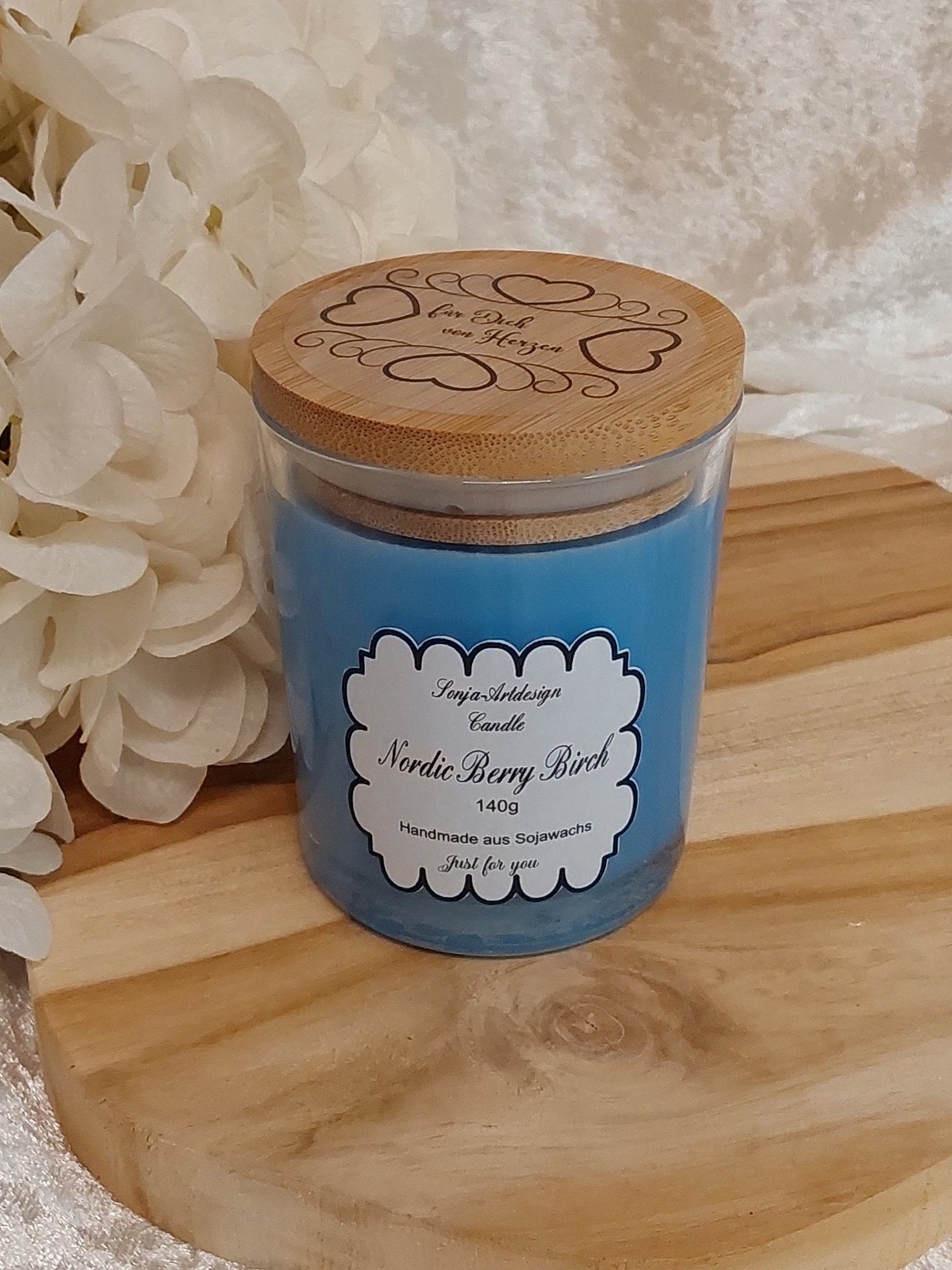 100% Sojawachs mit dem Duft Nordische Beere & Birke mit oder ohne weißer Geschenkbox.