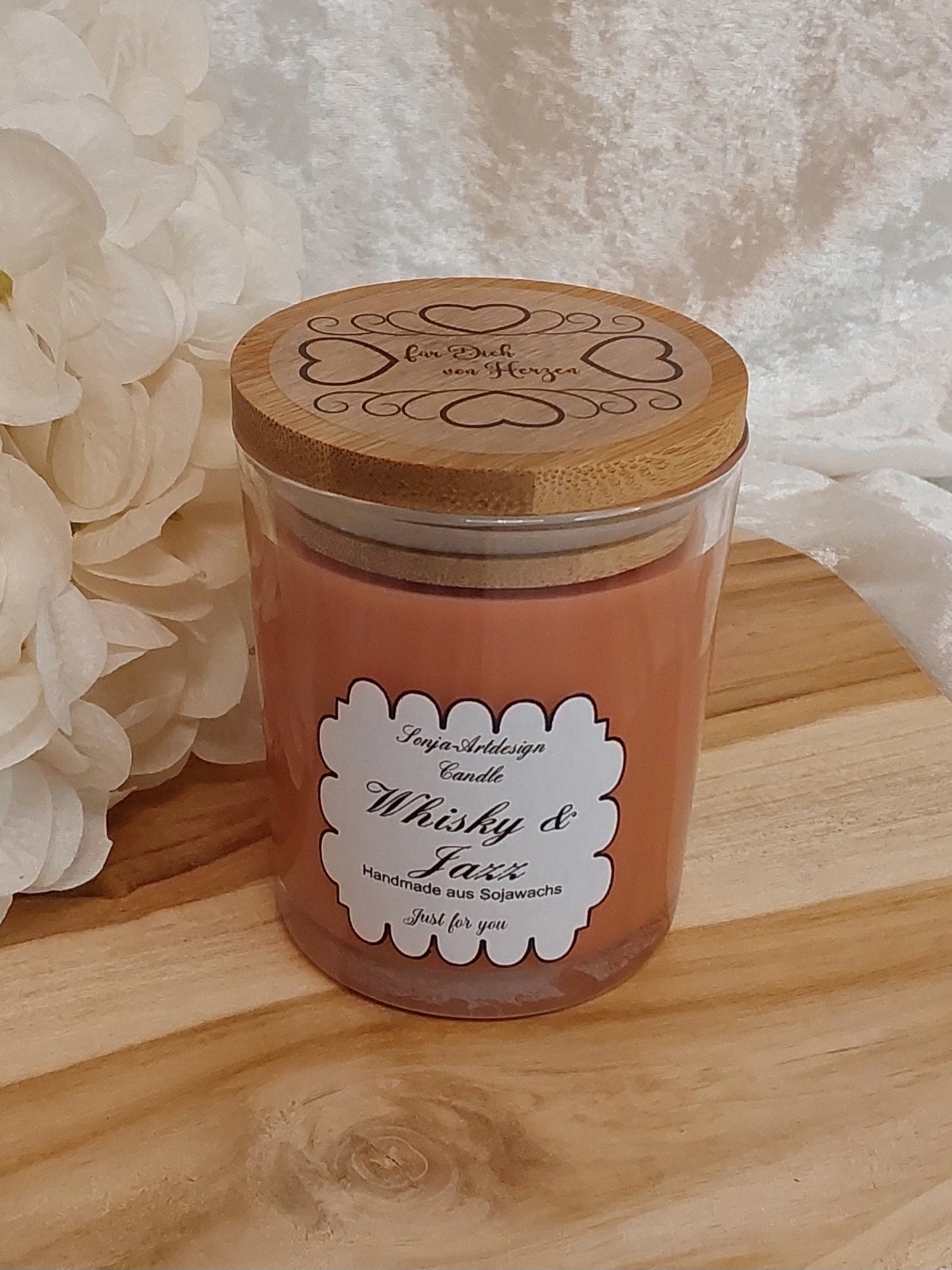 100 % Sojawachs mit dem Duft Whisky & Jazz mit oder ohne weißer Geschenkbox.