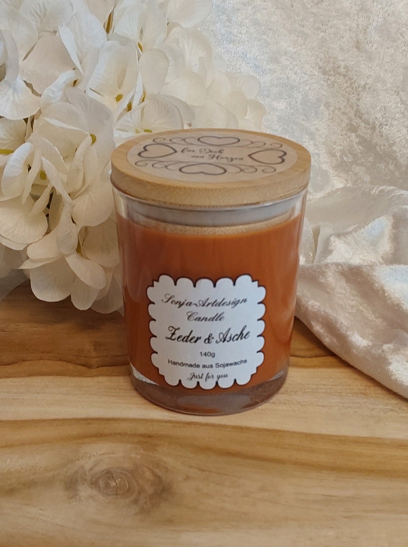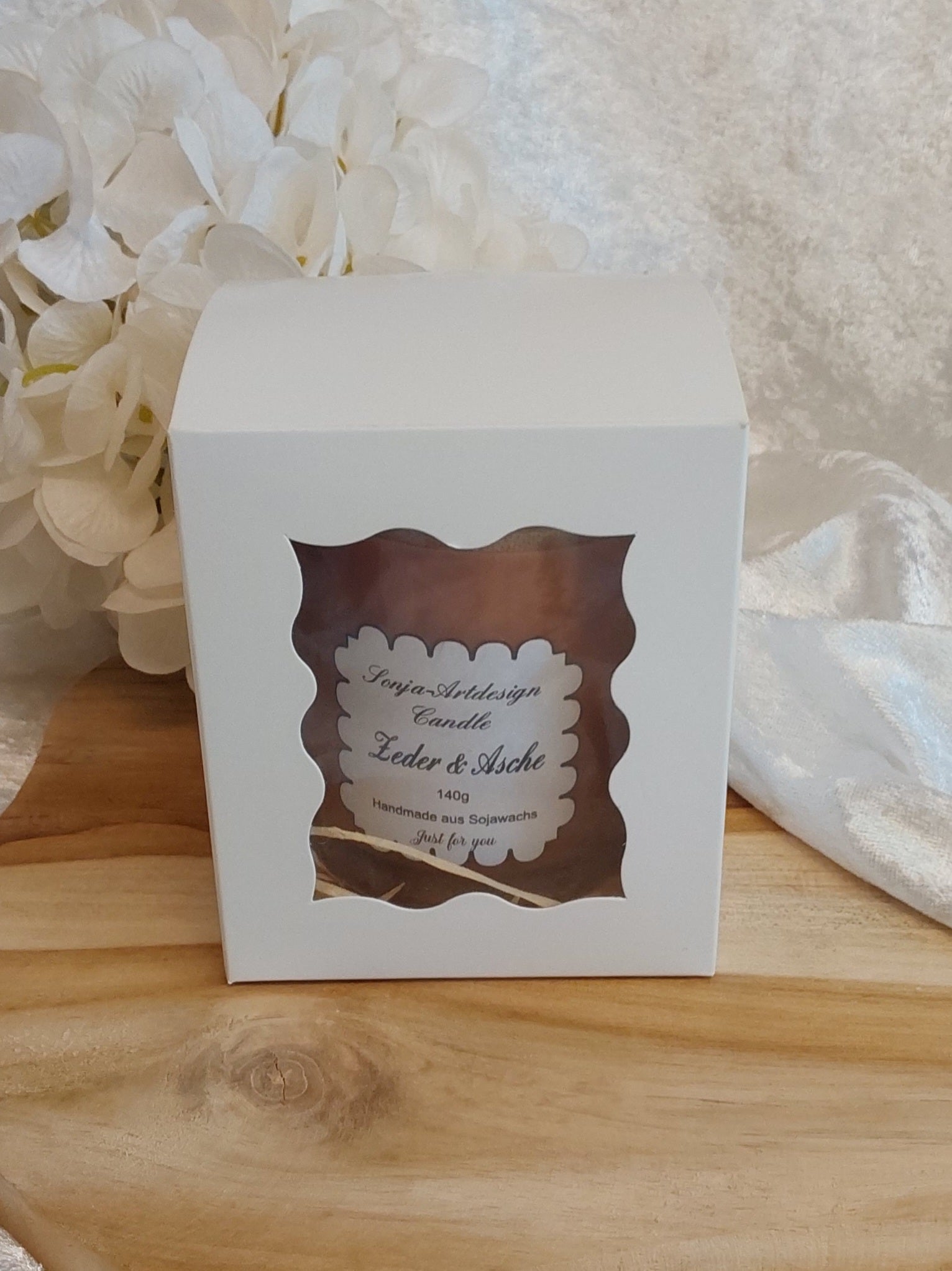 100% Sojawachs mit dem Duft Zeder & Asche mit oder ohne weißer Geschenkbox.