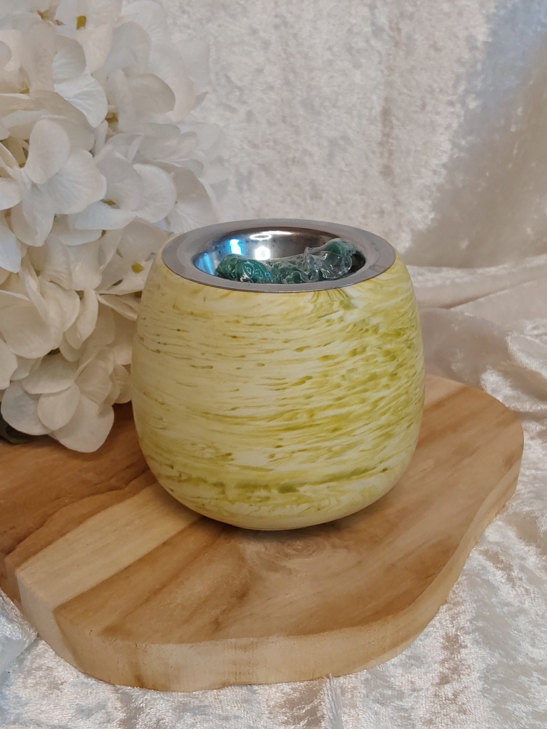Duftstövchen aus Jesmonite. Crem/Grün meliert, mit Wachspfännchen und 3 Duftmelts damit du direkt Testen kannst.