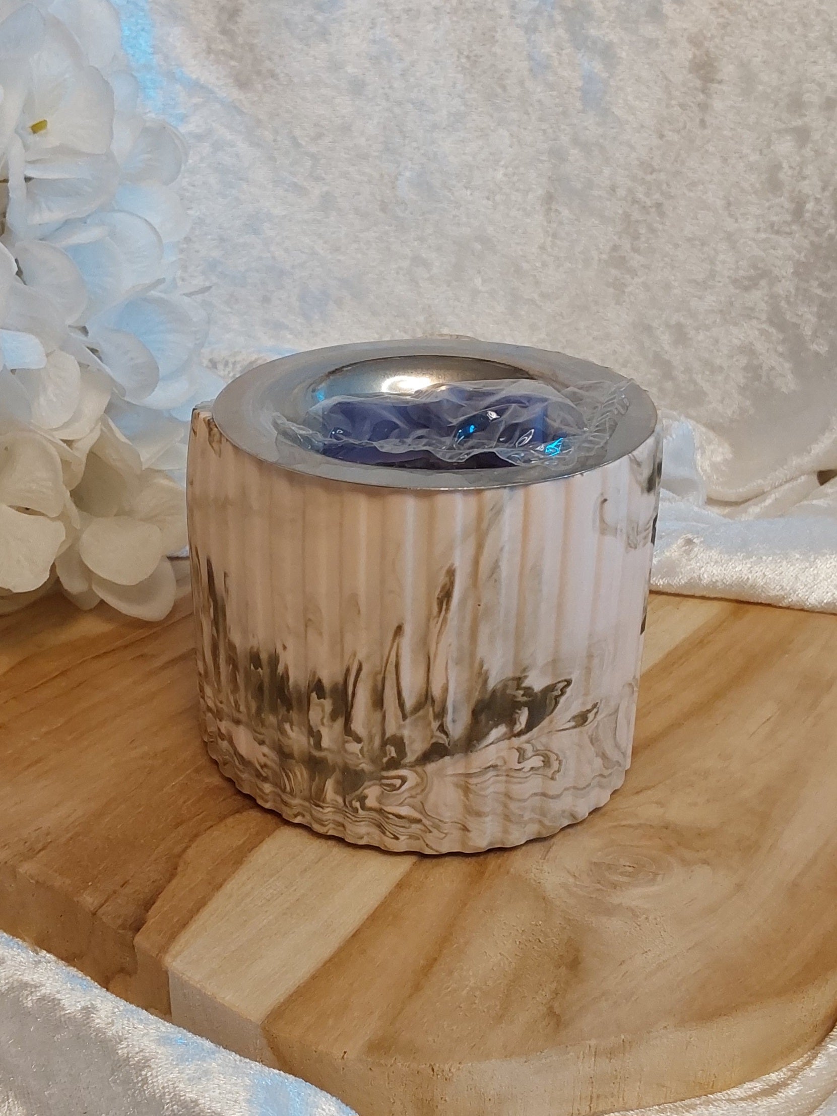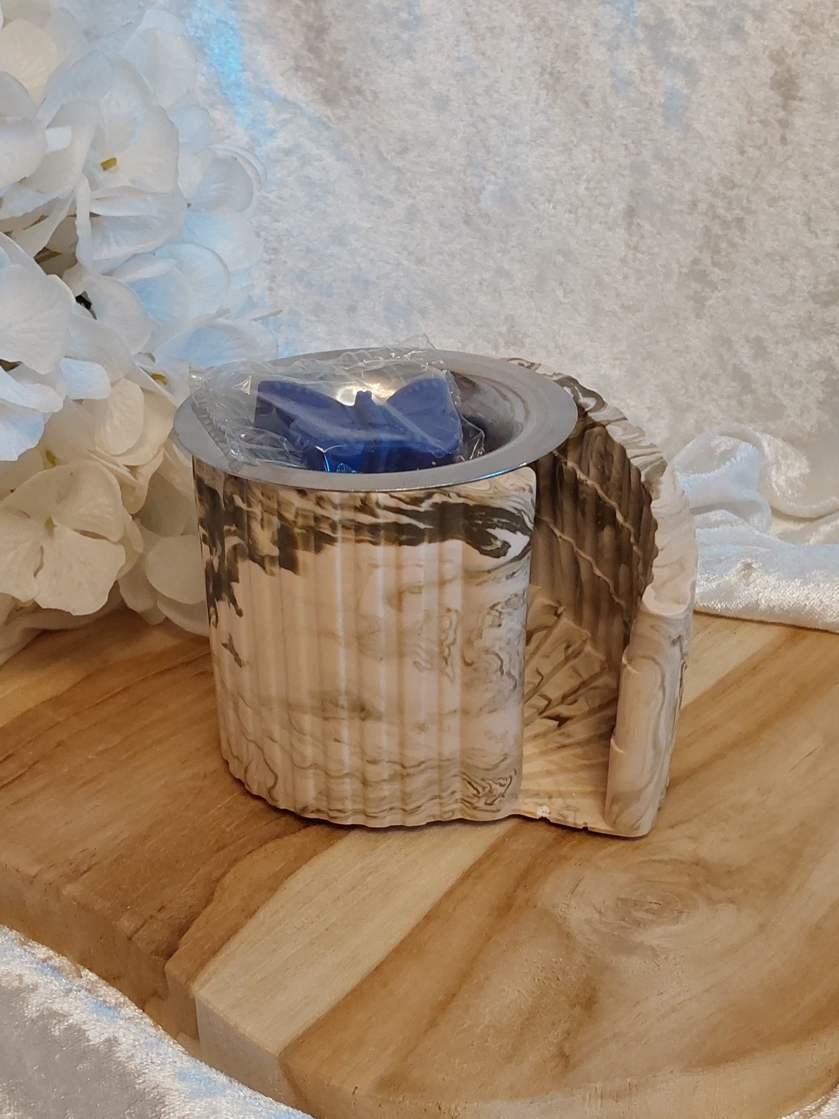 Duftstövchen aus Jesmonite. Beige und Khakigrün meliert, mit Wachspfännchen und 1 Duftmelts damit du direkt Testen kannst.