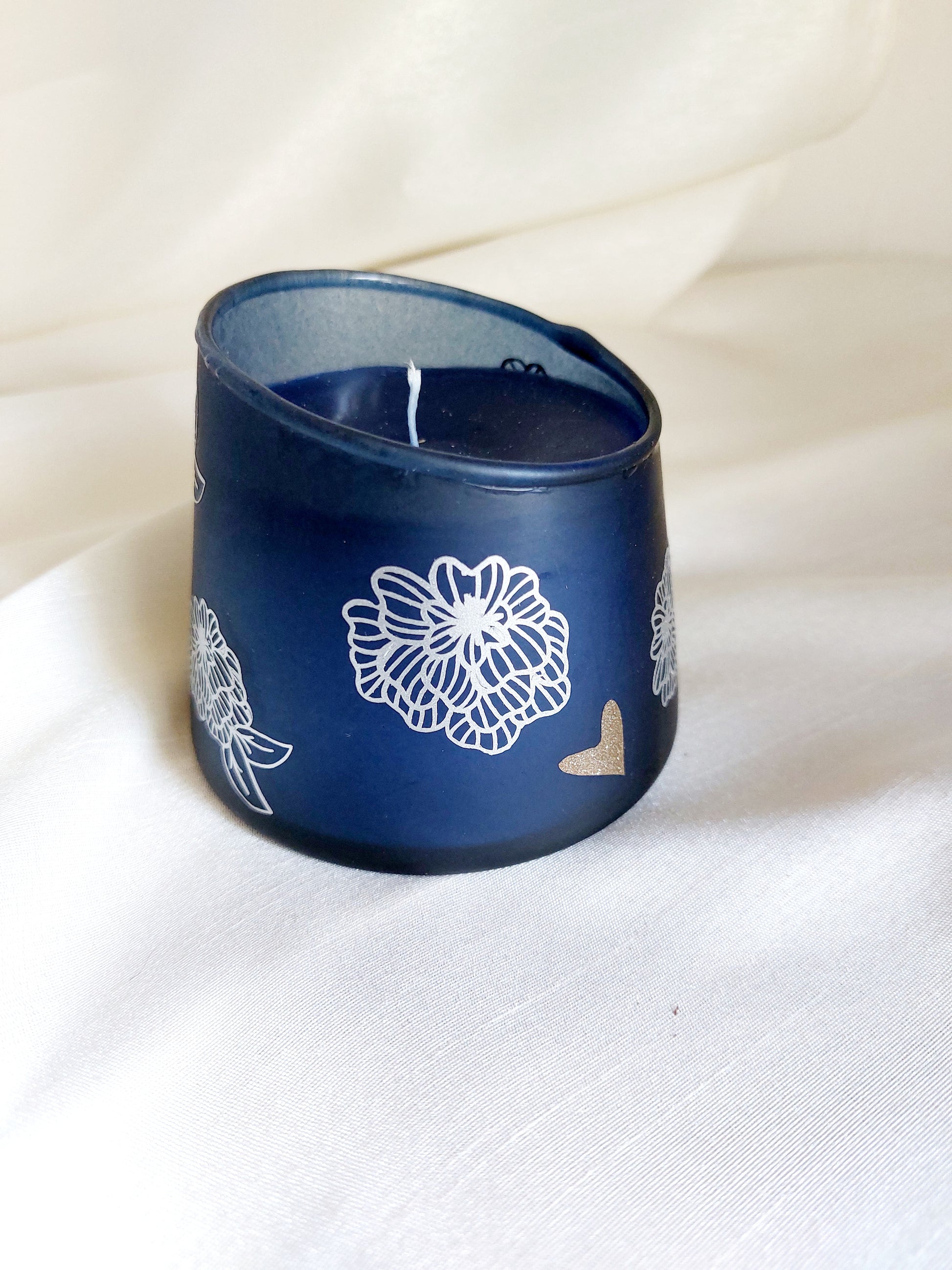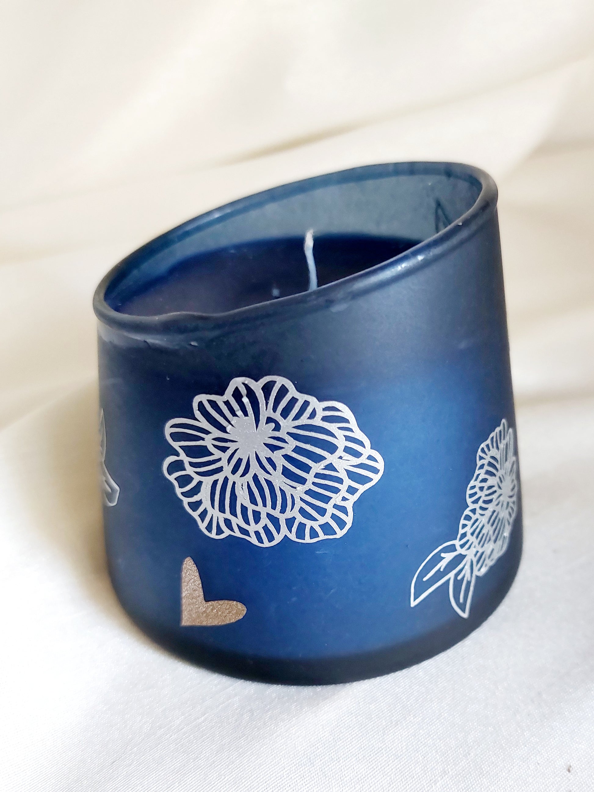 Individuell gestaltetes Kerzenglas. Selbst gegossene Kerze aus Paraffin/Stearin.