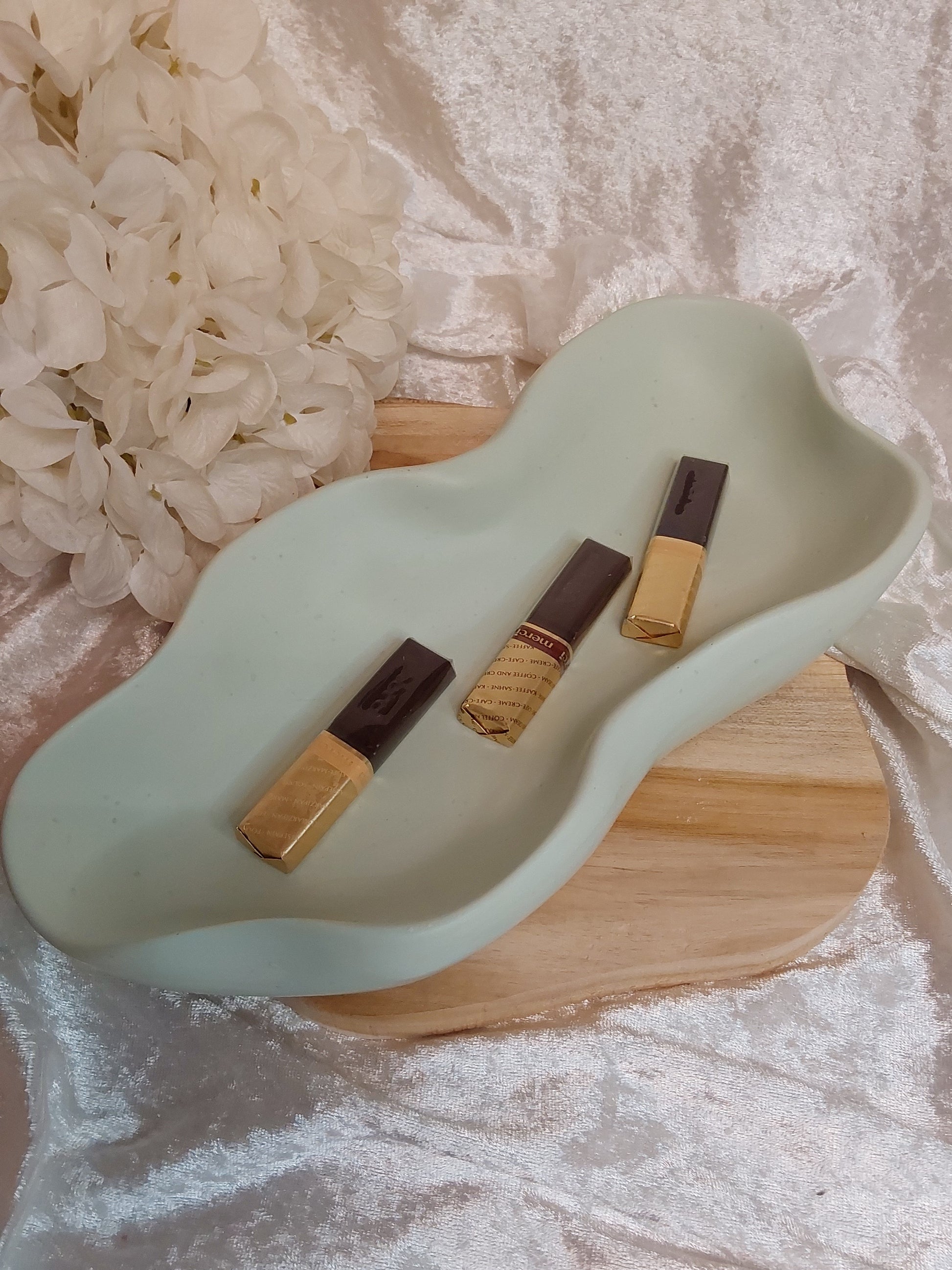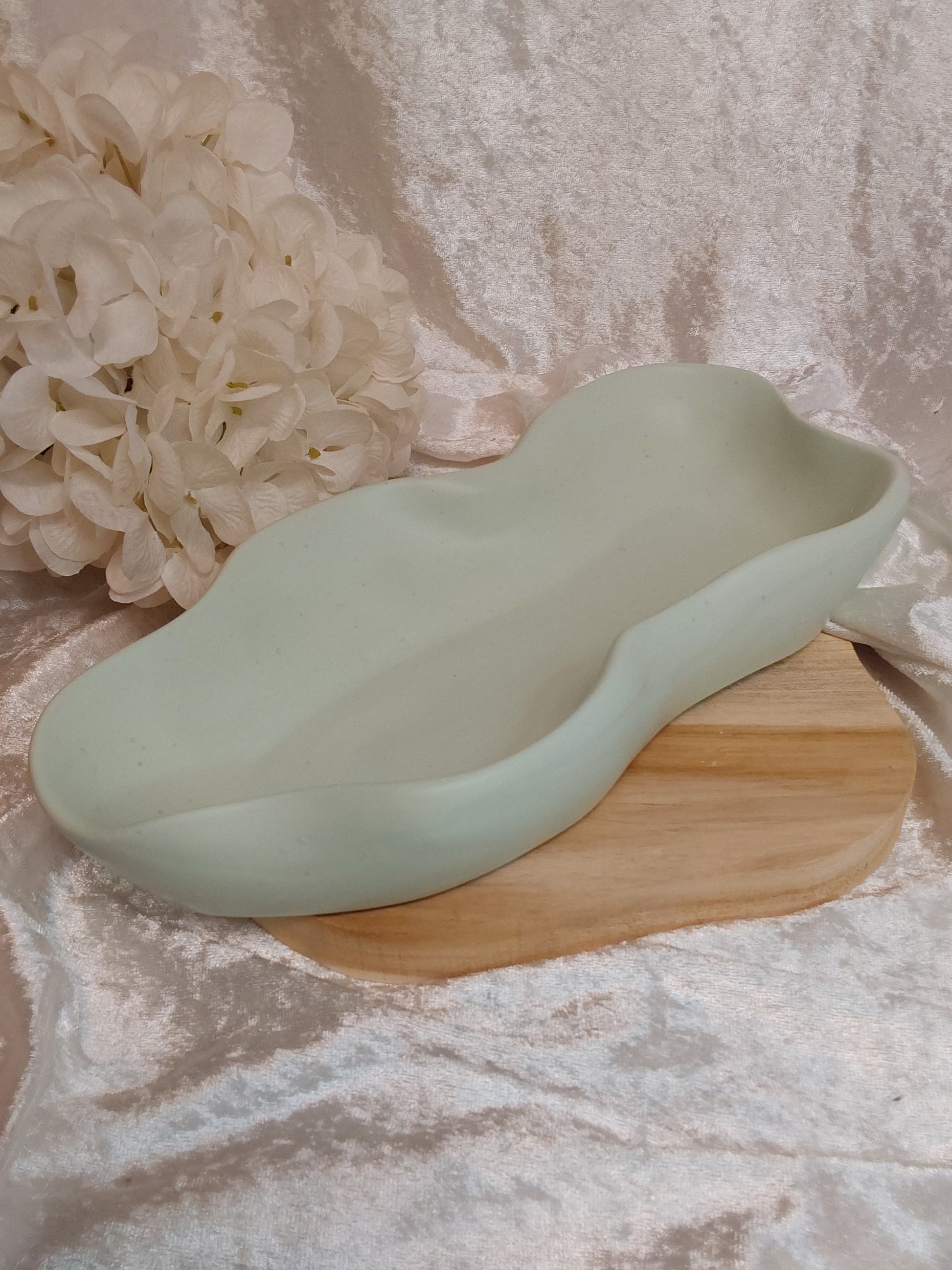 Große, ovale Wellenschale in einem hellen Grünton. Schöne Schale zum Servieren von Knabbereien, als Schlüsselablage, Schmuckablage usw.