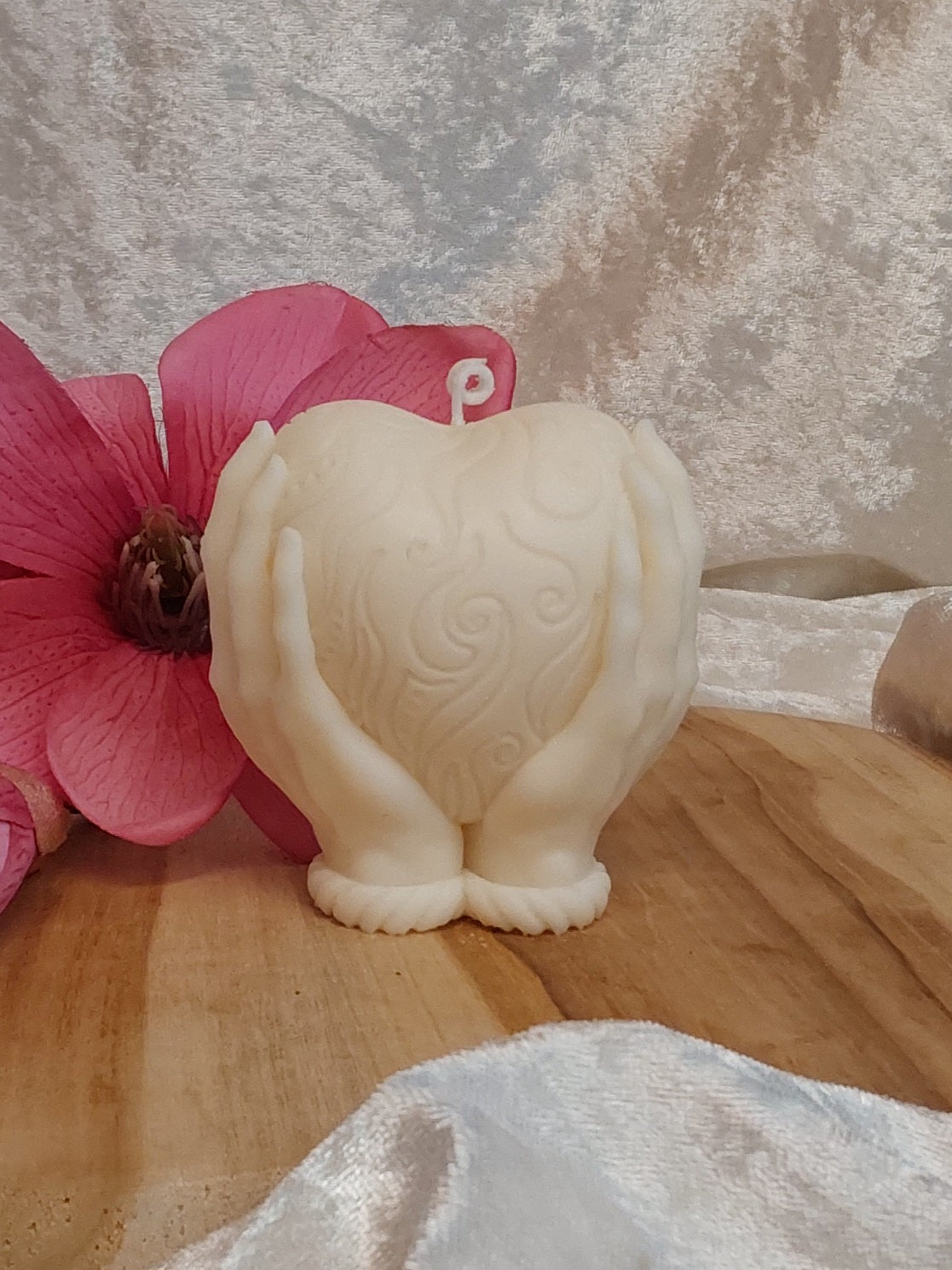 Hände die ein Herz halten aus Rapswachs, ohne Duft