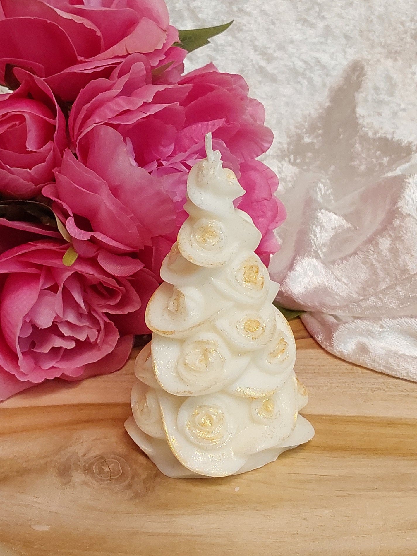 Tannenbaum-Kerze aus Sojawachs, ohne Duft.